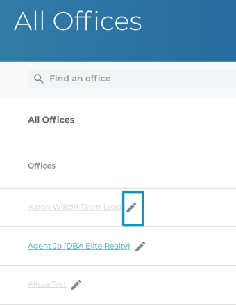 2. Choose the pencil icon for the office you want to edit