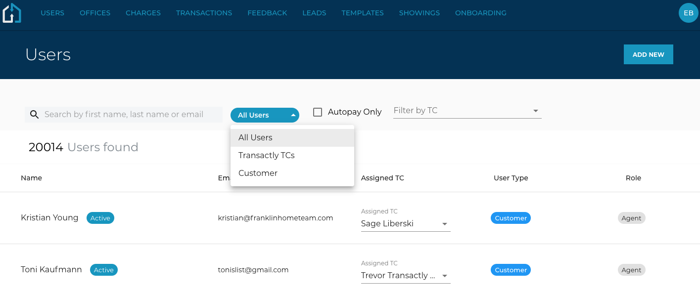 1. From the Admin login, navigate to the Users tab.