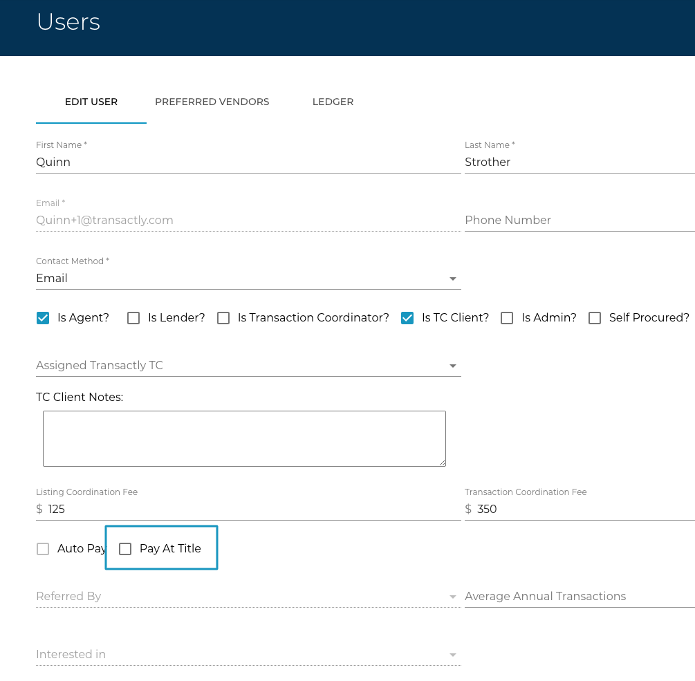-If a client is marked Pay at title, the assigned TC MUST be notified so they know to invoice the title company for payment.