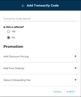 -A Transactly Code can only be applied during Onboarding