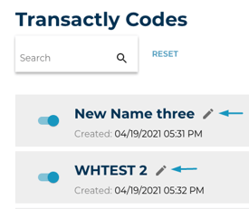 Choose the pencil icon to edit a code